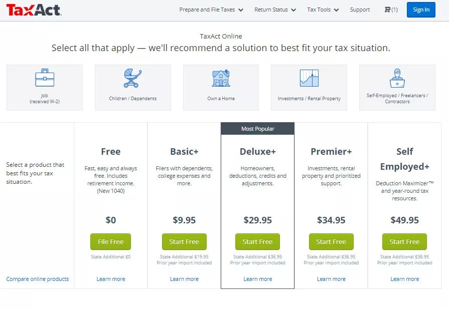 - Perfect for your unique situation, Get the biggest tax breaks from your mortgage interest, investments and more. If you own a home, have investments, or made charitable donations, TaxAct Deluxe has the forms and tools for your specific tax situation.